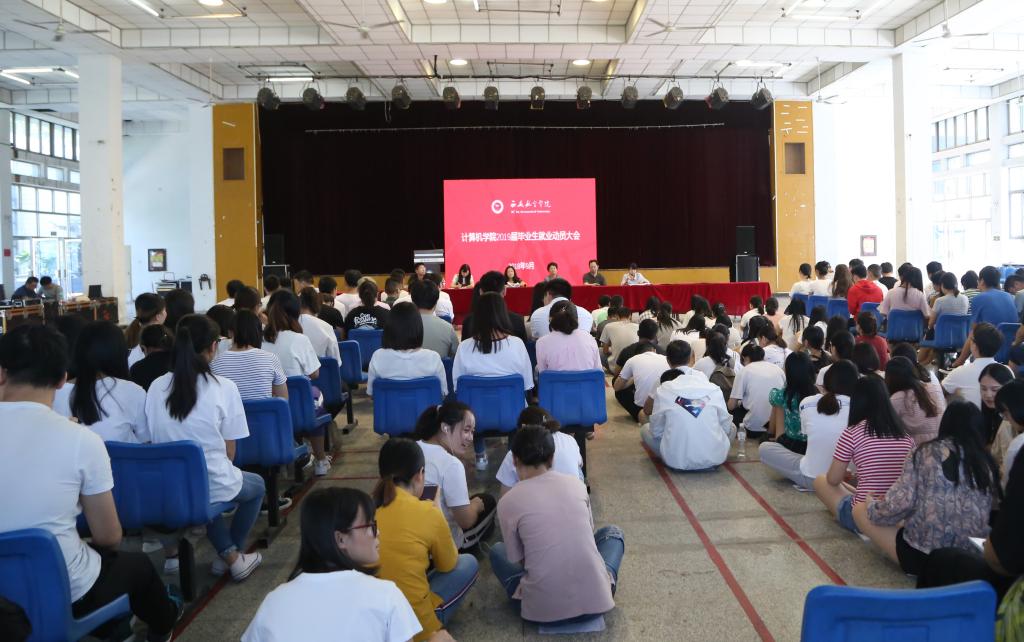 9月8日,计算机学院组织2019届全体毕业生召开了就业动员大会。会议由学生管理科科长汪芳主持,计算机学院党总支书记刘晋云、院长杨俊清、副院长任静、教研室老师郭杰及毕业班辅导员参加了此次大会。