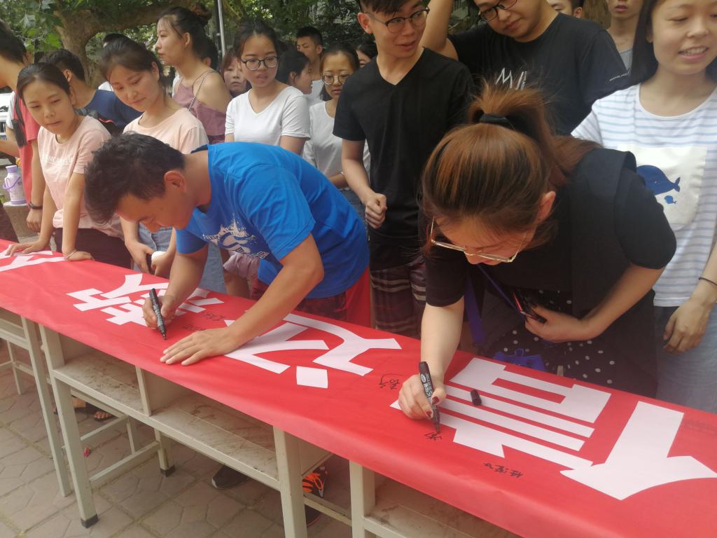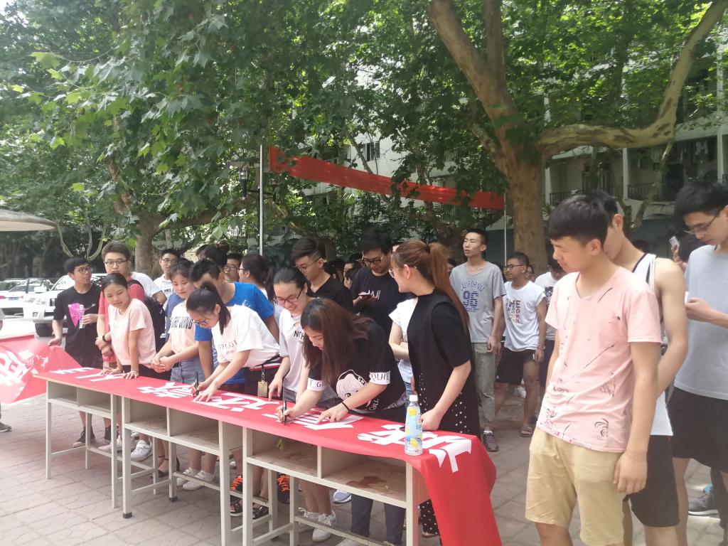 计算机学院于6月24日中午组织60余名毕业生开展“诚信还款、从我做起”签名活动。