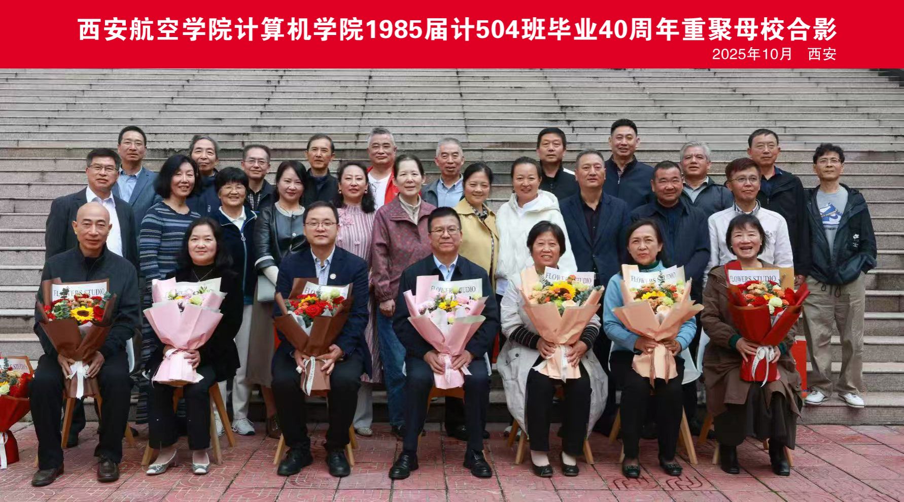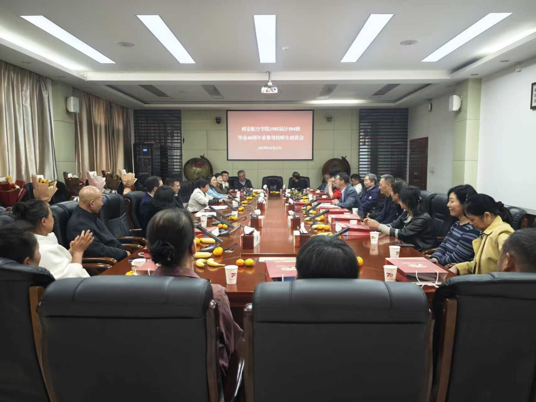 四秩春秋如白驹,归来依旧少年心。10月13 日上午,计算机学院1985届计504班来自全国各地的校友带着对母校的崇敬、对老师的感激、对同学的思念相聚母校,在学校莲湖校区教学楼九楼第三会议室举行了“共忆西航四载情谊同庆母校七十华诞”师生座谈会。学校党委副书记宁永录出席,学校校友总会办公室主任张赛、计算机学院党总支书记陈长征、党总支副书记汪芳、当年的班主任薛茹珍、任课教师张立玮、王美丽以及该班23位返校校友参加。座谈会由该班校友刘安枕主持。