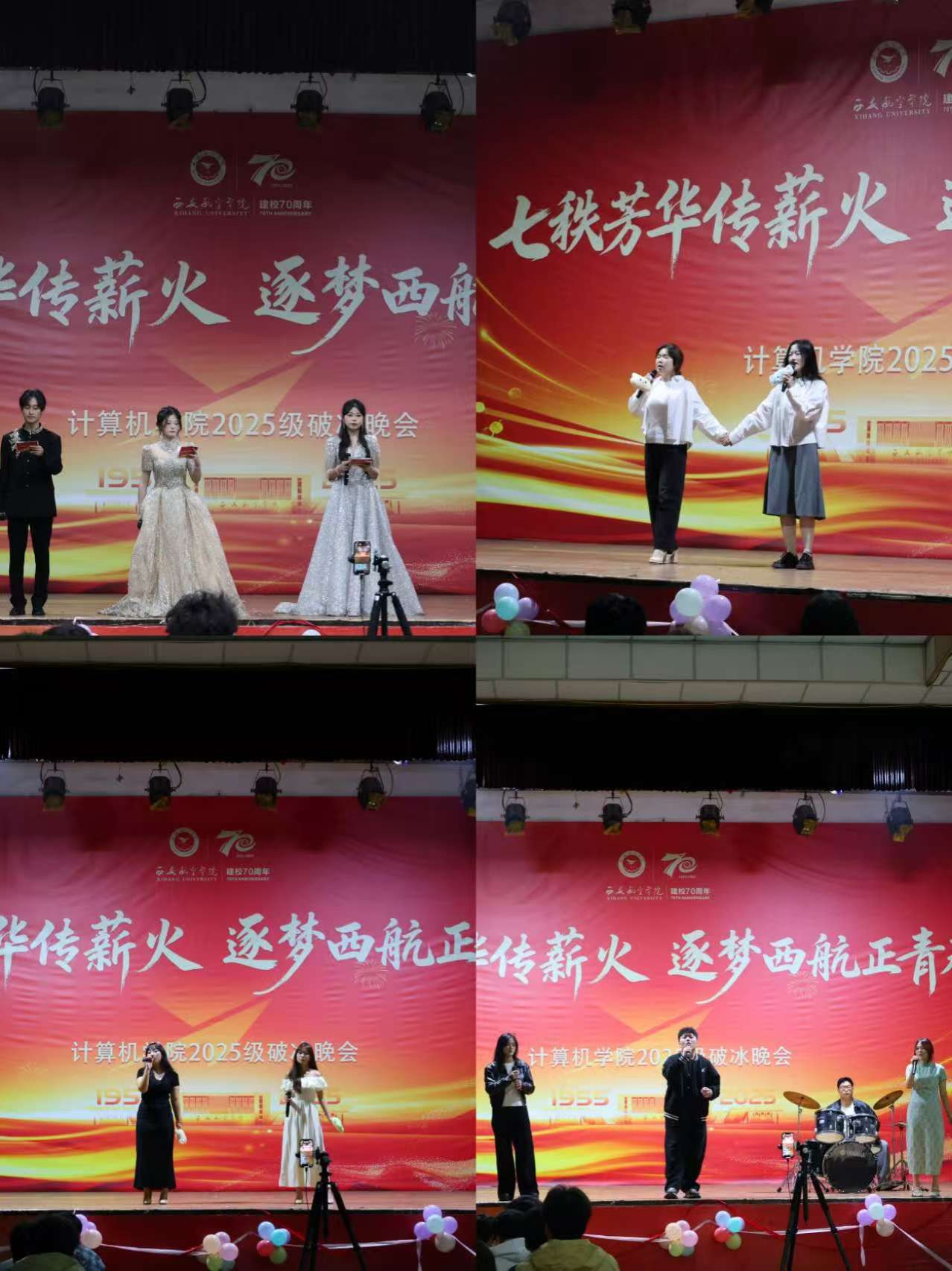 七秩芳华传薪火,逐梦西航正青春。10月28日晚,计算机学院2025级新生破冰晚会在莲湖校区圆满举行。学院领导班子成员、全体辅导员、各学院团总支书记、校友及2025级新生出席晚会。现场300余名师生齐聚一堂,聆听青春之声,共赏视觉盛宴!