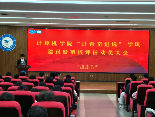 11月3日晚,计算机学院在莲湖校区报告厅举办了“计青奋进说”学风建设暨审核评估动员大会。学院党总支副书记汪芳、学工办副主任侯勇、辅导员李晨阳及2025级全体学生参加此次大会。