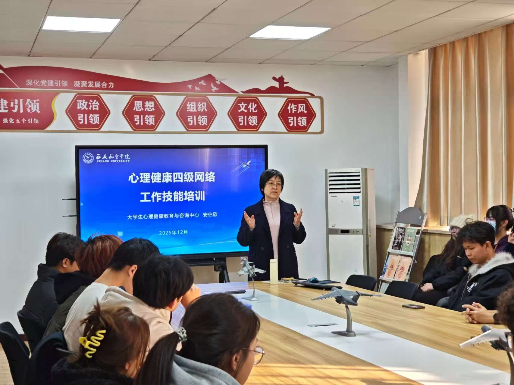 为切实发挥心理育人实效,12月5日下午,学校大学生心理健康教育与咨询中心主任安伯欣老师在教学北楼216为我院2025级心理委员、心灵护航员做心理健康四级网络工作技能培训,培训会由辅导员刘冬妮主持。