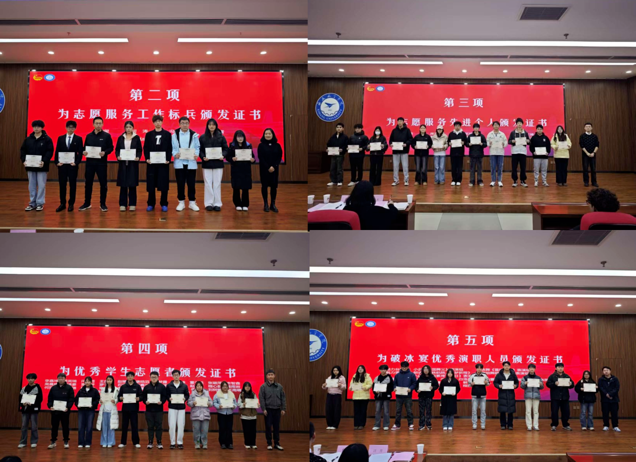 首先,张家玮宣读了表彰决定。随后,参会老师分别为志愿服务先进个人、优秀学生志愿者、破冰宴优秀演职人员颁发了证书。现场掌声不断,既是对获奖者的充分肯定,也是对全院志愿力量的有力鼓舞。